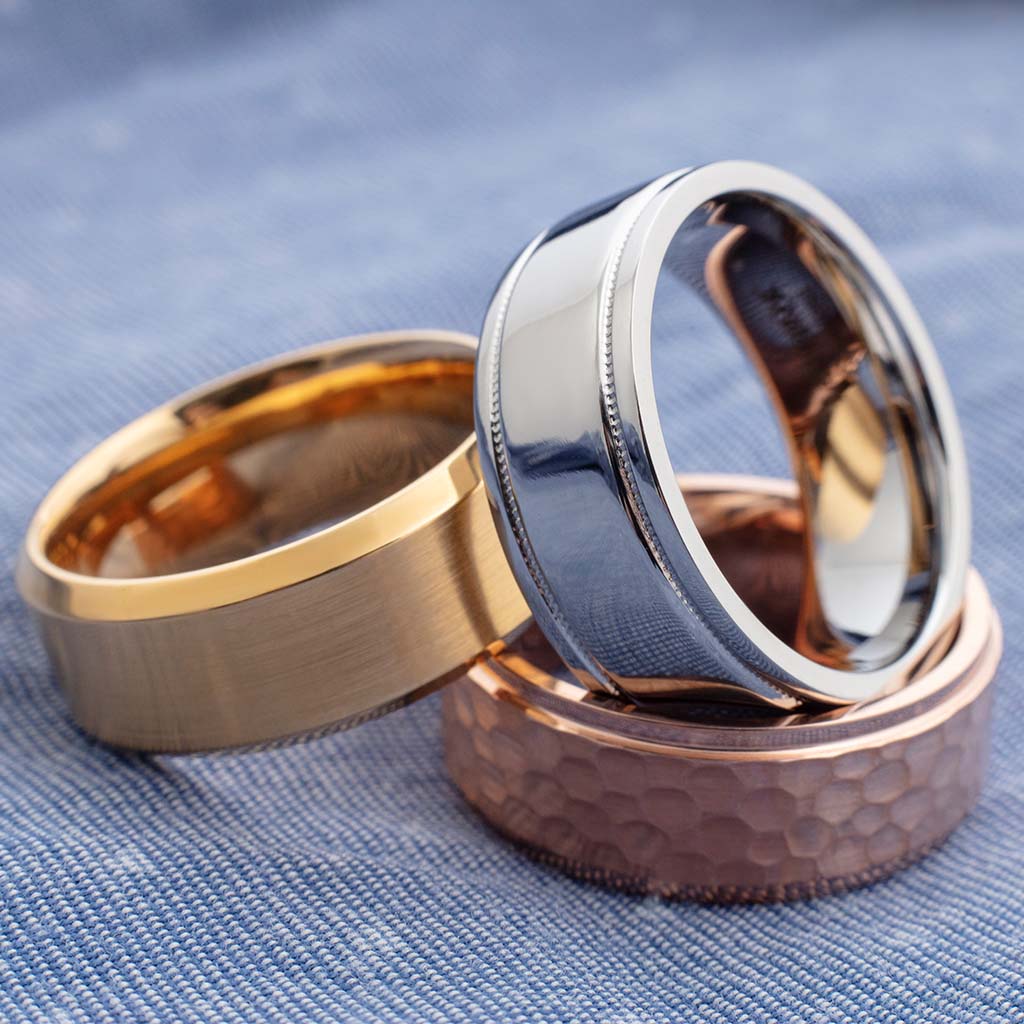The ring you choose should reflect the significance of the commitment it symbolizes as well as compliment the style of the man wearing it. Our bands can be crafted in a range of materials. From the classic allure and enduring luxury of gold and platinum to the strength and distinctive hues of alternative metals like Tungsten, Zirconium or Tantalum.