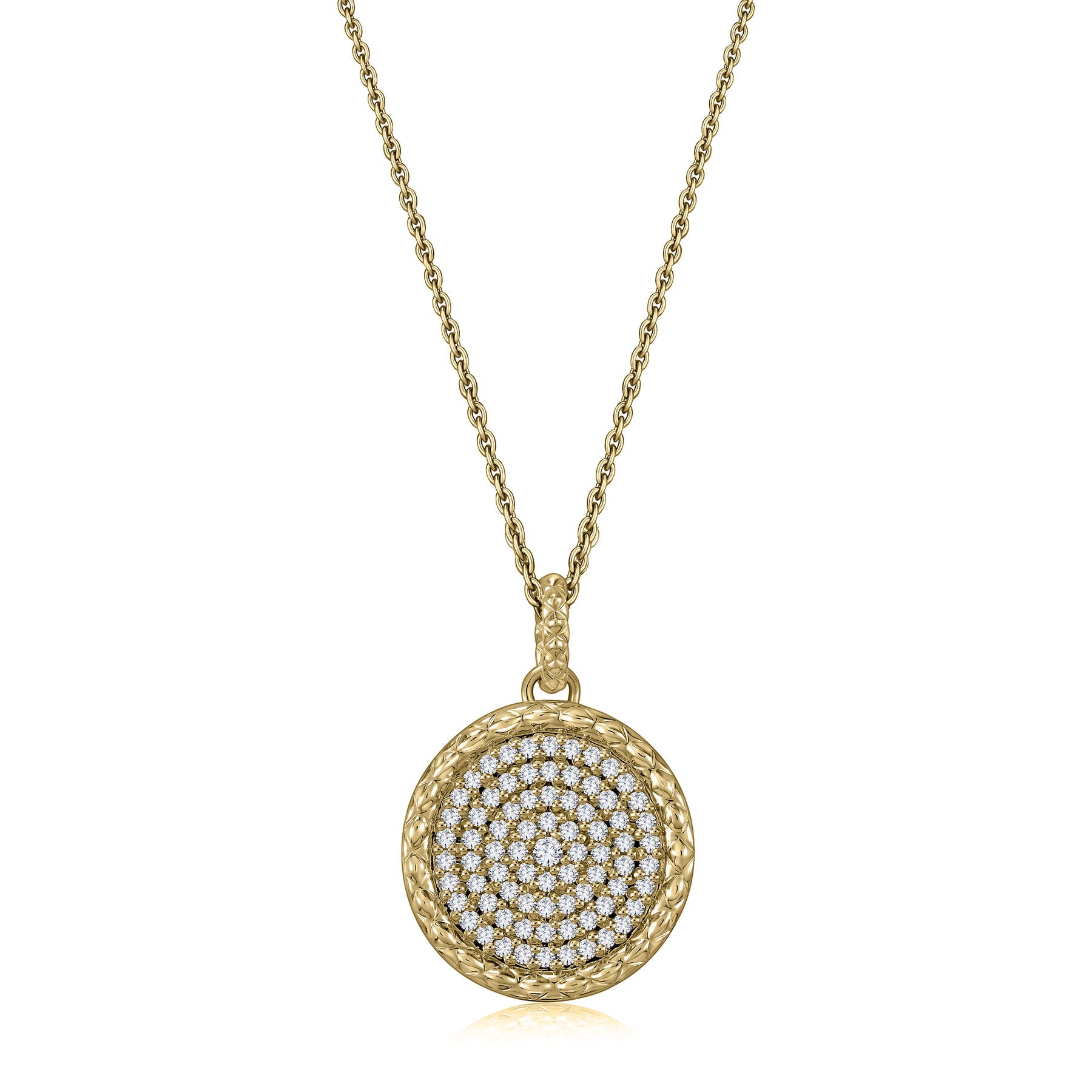 Elevate your style with this charming yellow gold necklace featuring a round, brilliant-cut diamond pendant. The classic necklace is suspended vertically, showcasing its meticulous craftsmanship and timeless elegance. A radiant piece designed to capture attention.