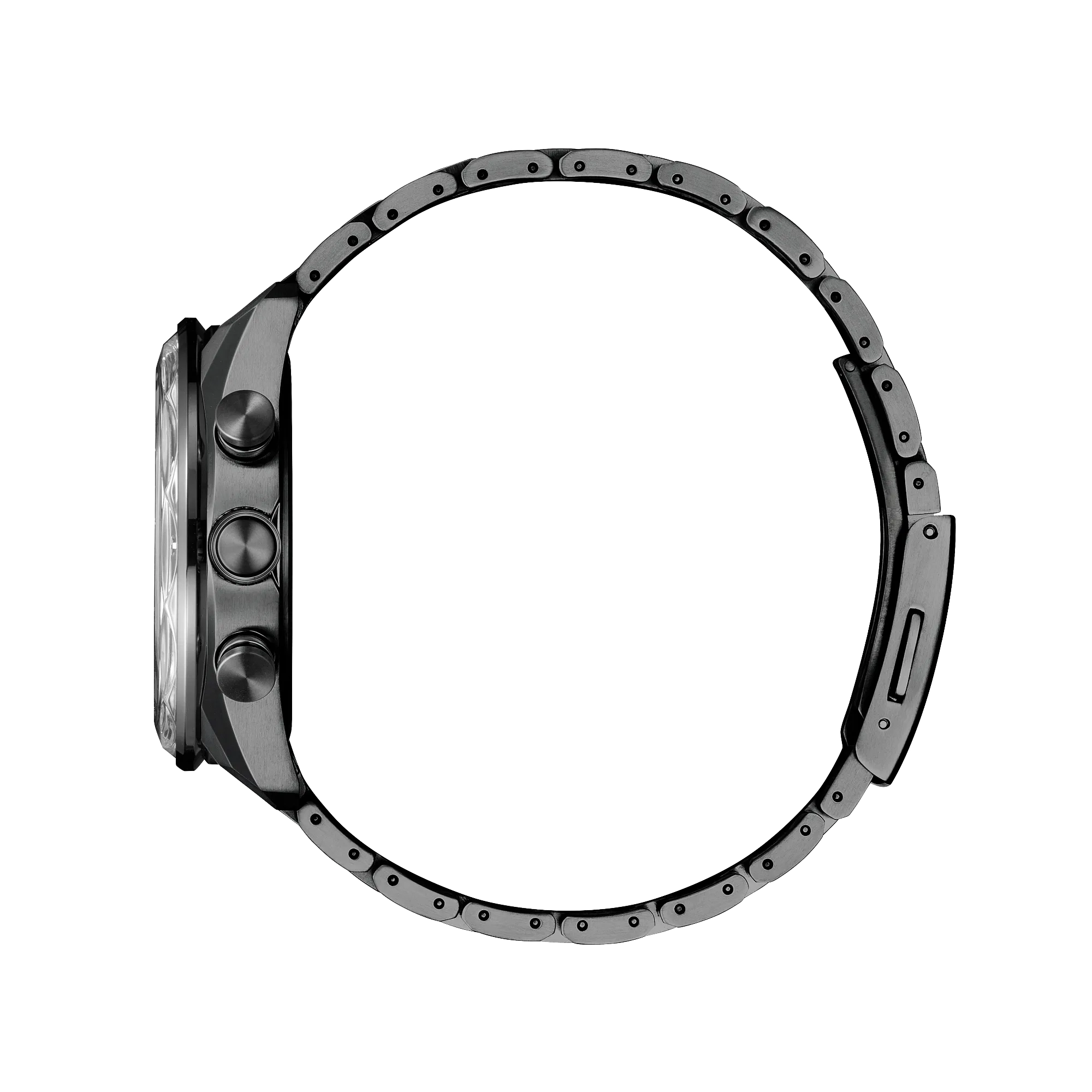 Innovative technology once again meets elevated chronograph styling in our latest: the limited-edition ATTESA H800 Full Sapphire Bezel. A 42mm Super Titanium™ case in gray DLC solidifies the lightweight, durable construction of the timepiece that is also scratch- and corrosion-resistant, while a matching triple-link bracelet secures the watch to the wrist. A signature crown and modern chronograph pushers add a sporty touch, while an expansive sapphire crystal extending over the inner world-time bezel differentiates the timepiece in the ATTESA line.